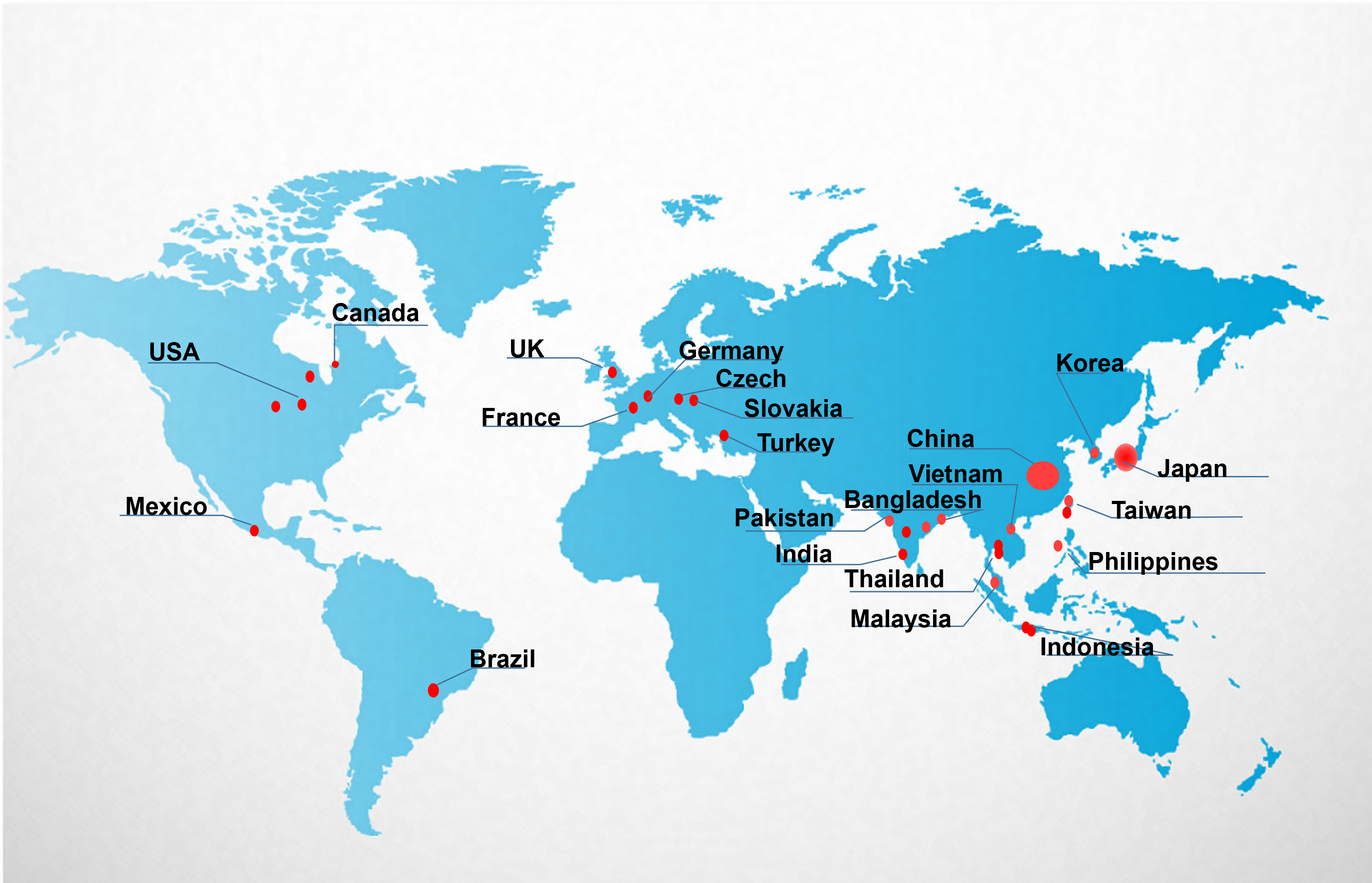 Celá skupina má více než 23 000 zaměstnanců s 80 výrobními závody a provozy ve 22 geografických lokalitách se sídlem v Japonsku.